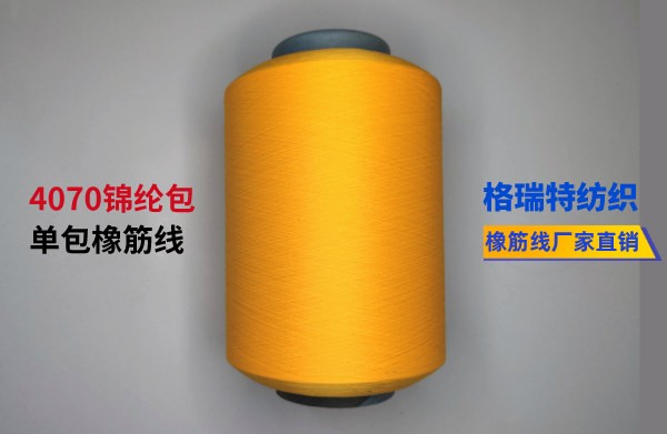 苏格瑞特纺织生产的优质单包橡筋线 ,行业客户常用型号有:4075涤纶包、4070锦纶包、7075涤纶包、7070锦纶包。